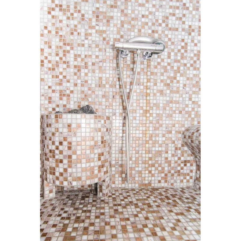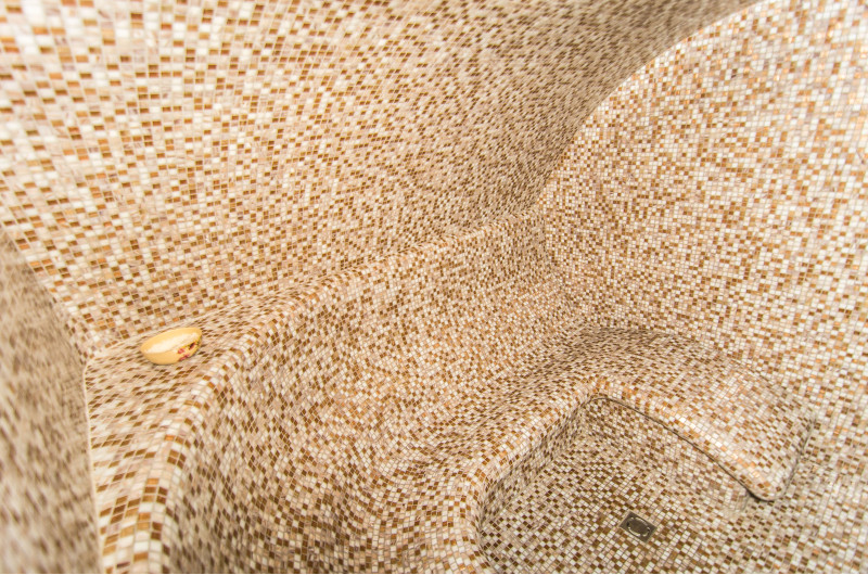 Finitura: tessere di mosaico in vetro frantumato di colore neutro.