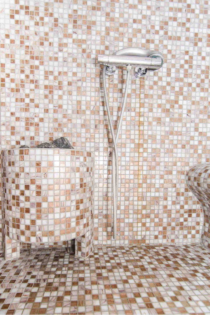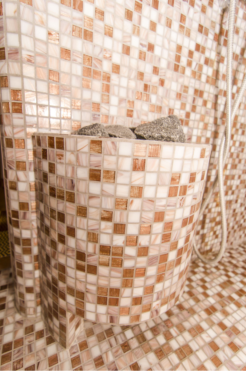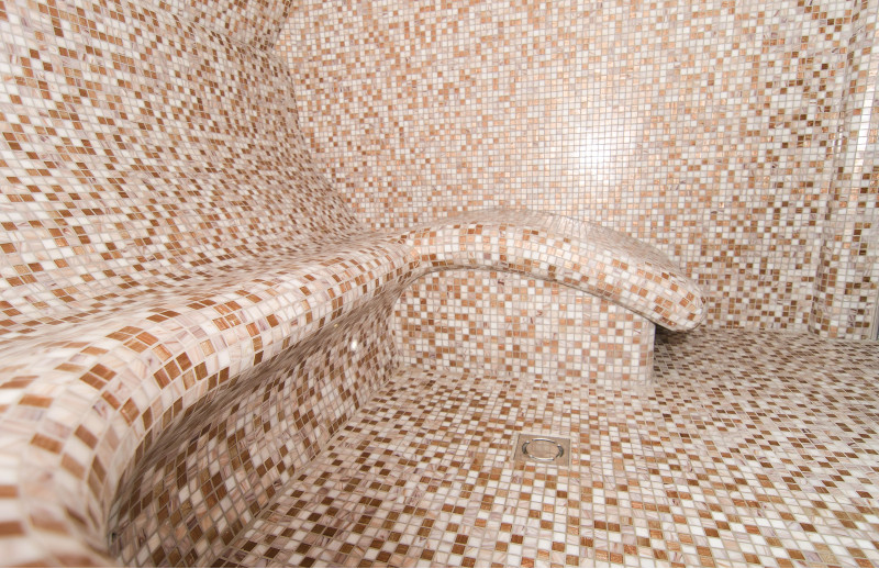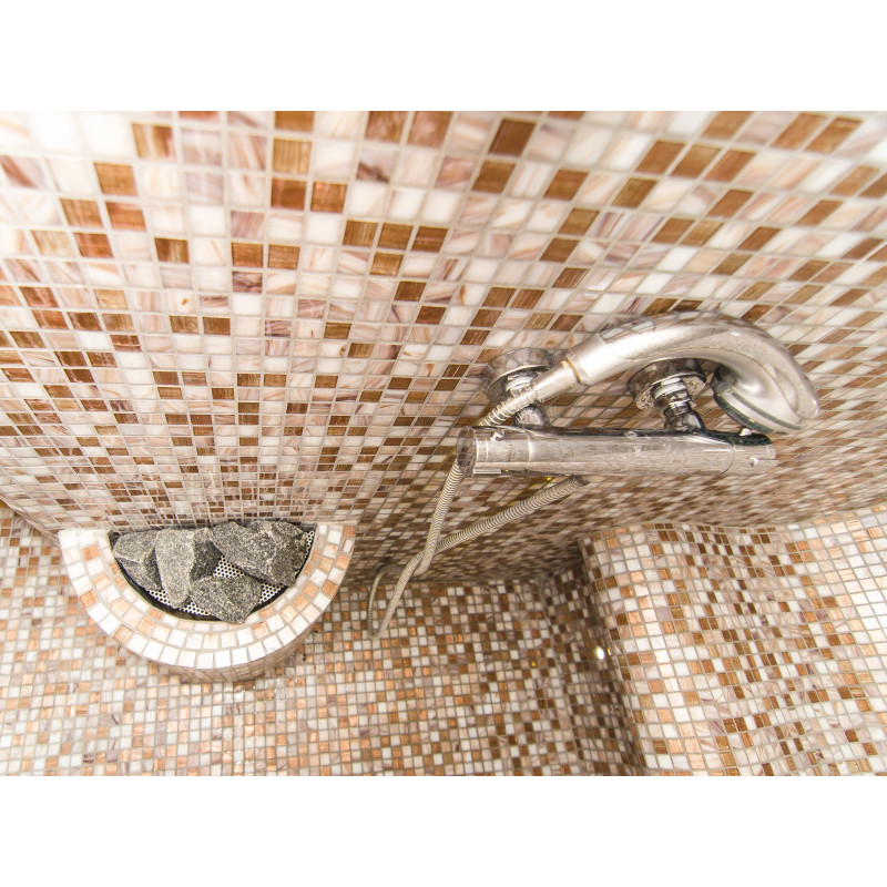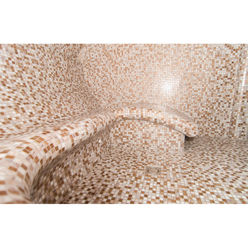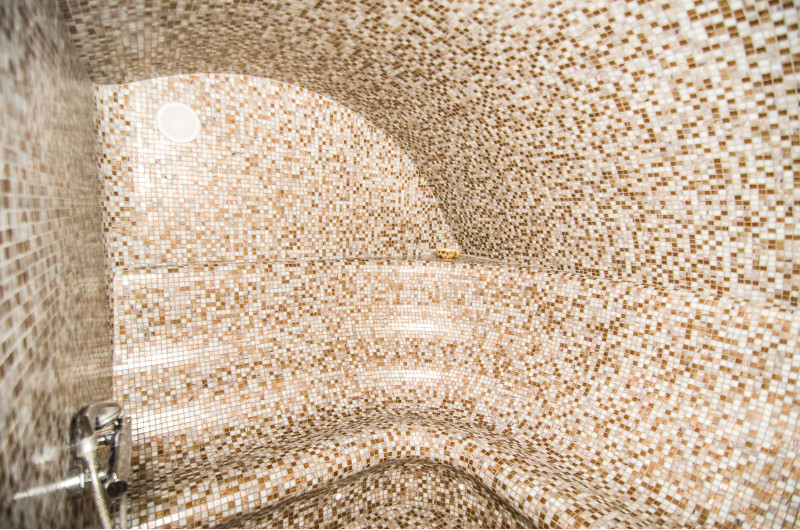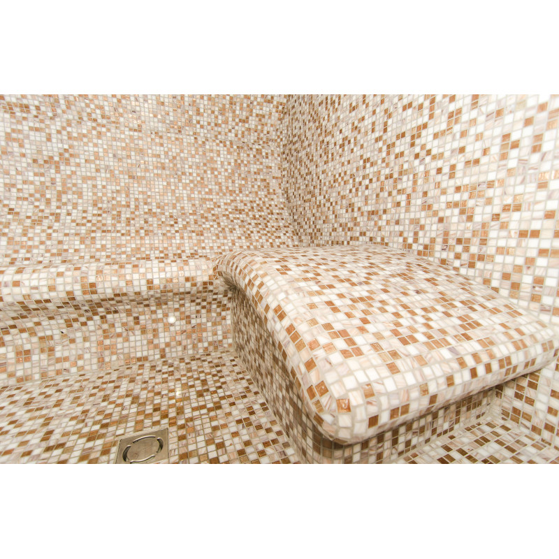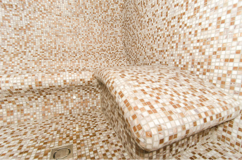 Le panche, le pareti e i soffitti della sauna a vapore sono realizzati individualmente in speciale polistirene estruso. Il soffitto è ad arco tipico di tutte le saune a vapore.