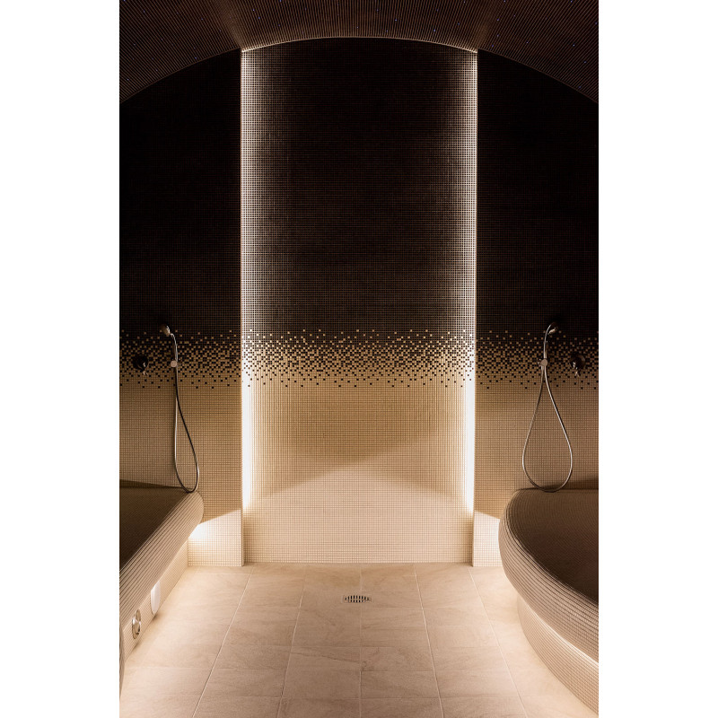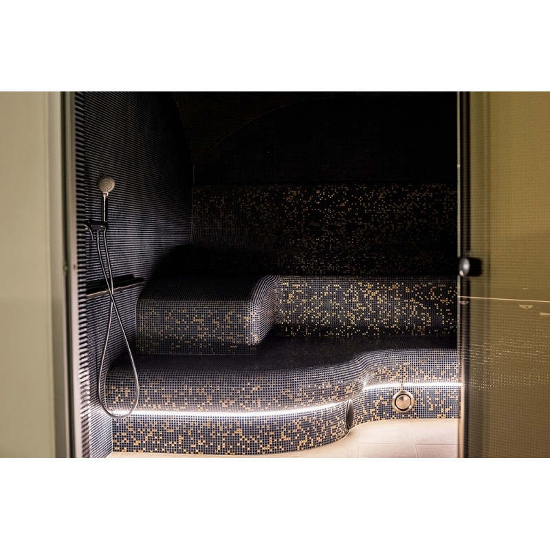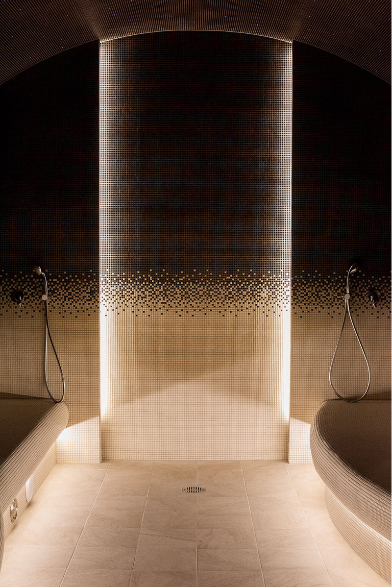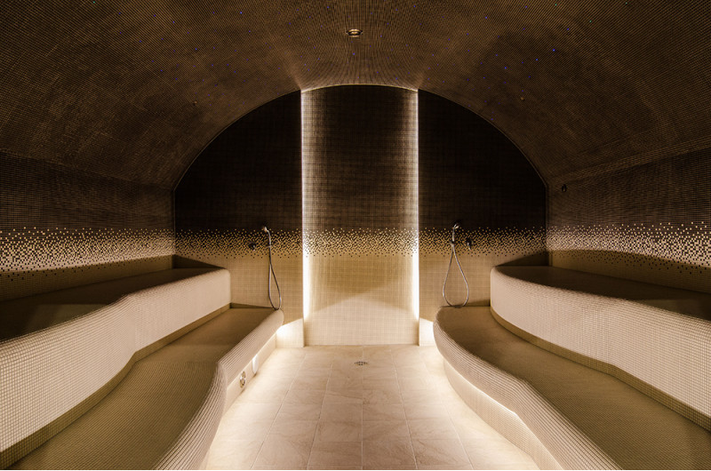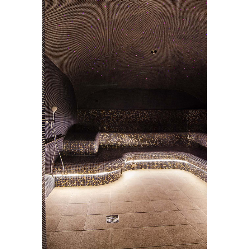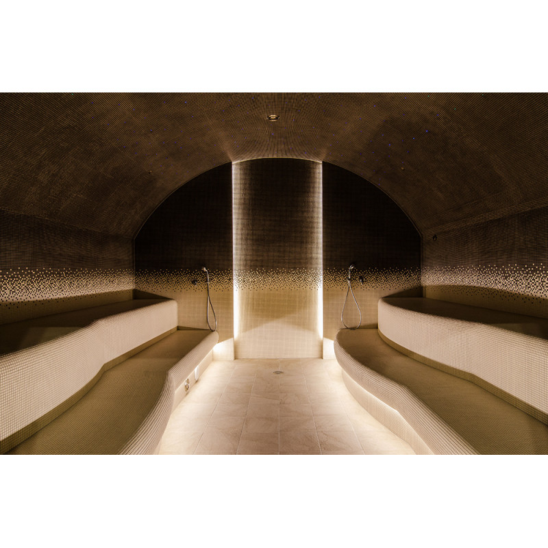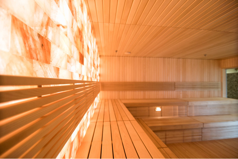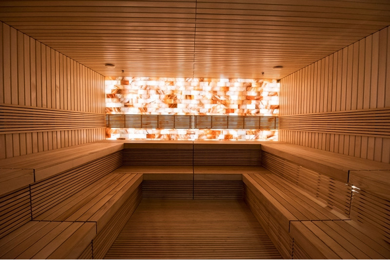 - Sotto i letti sono installati apparecchi di illuminazione resistenti all'umidità e alla temperatura. L'illuminazione a LED è installata dietro la parete di sale dell'Himalaya.