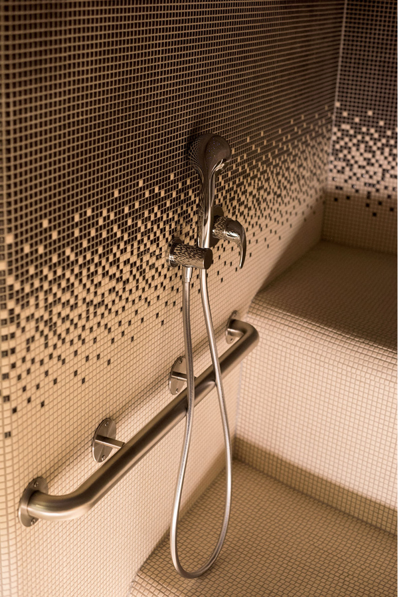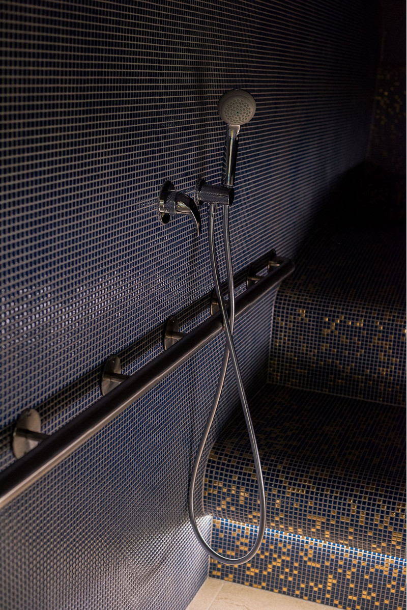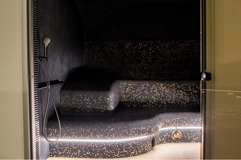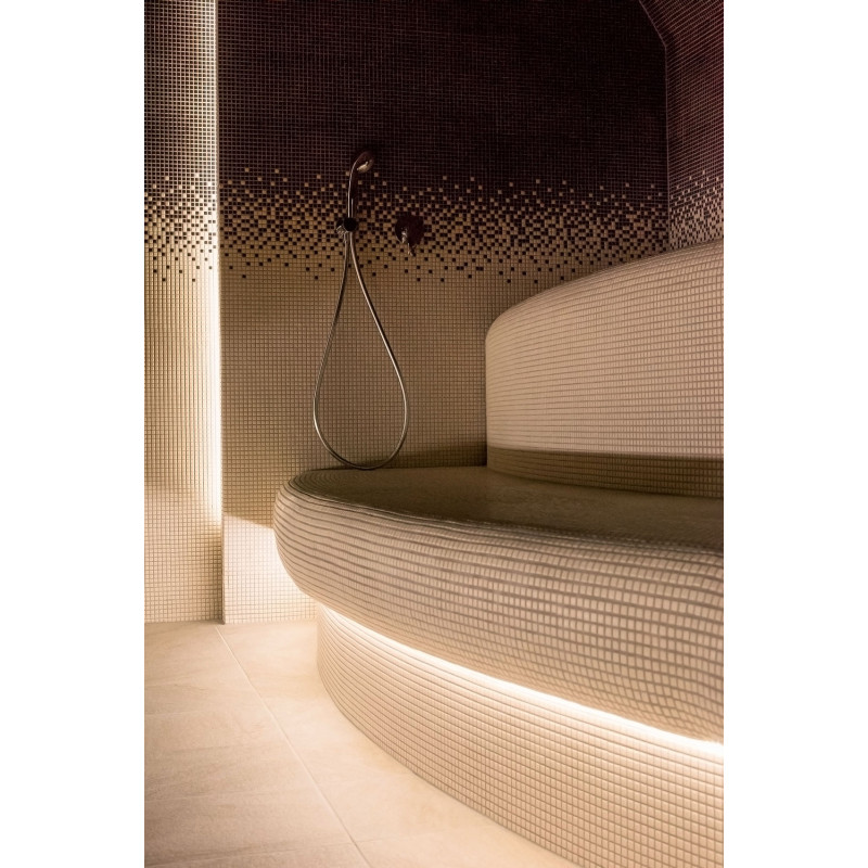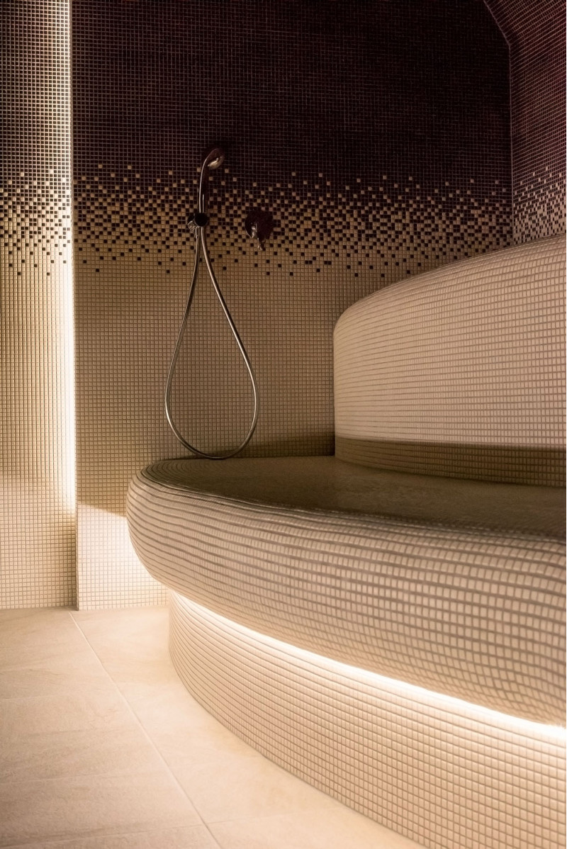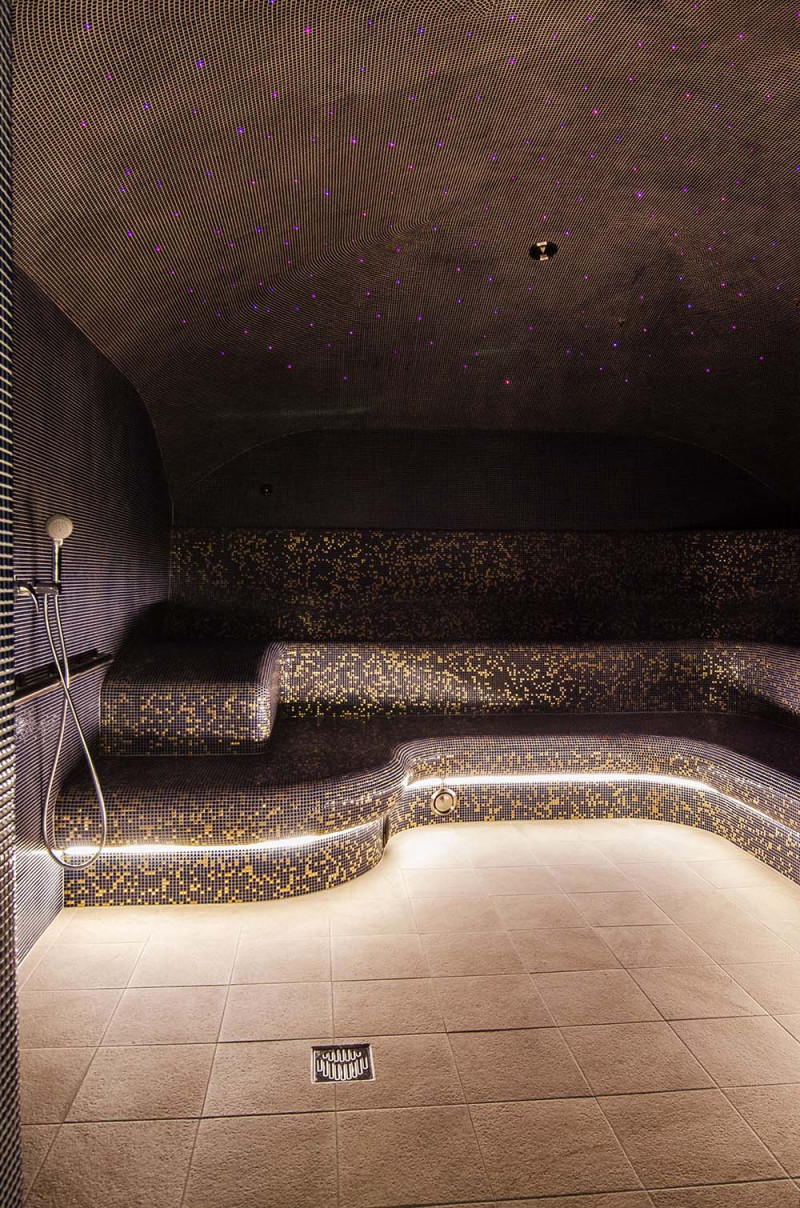 - Sotto i letti sono installati apparecchi di illuminazione resistenti all'umidità e alla temperatura. L'illuminazione a LED è installata dietro la parete di sale dell'Himalaya.