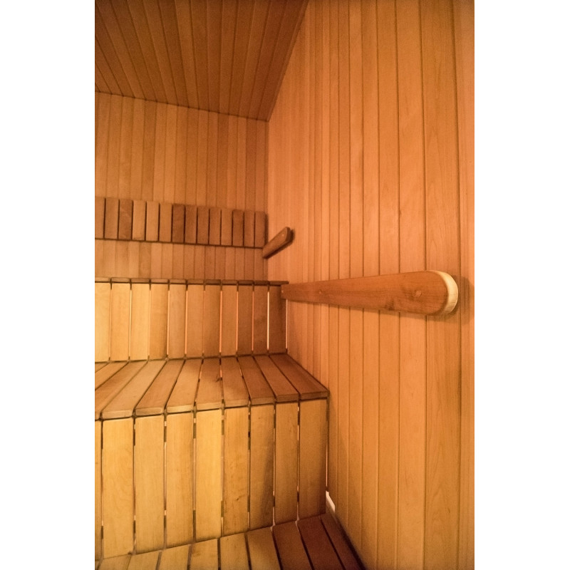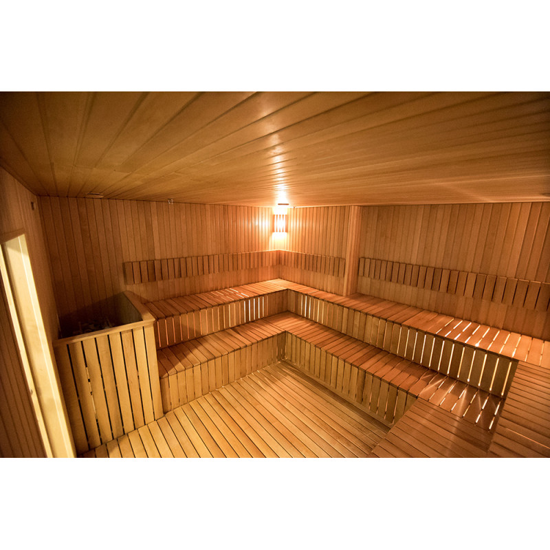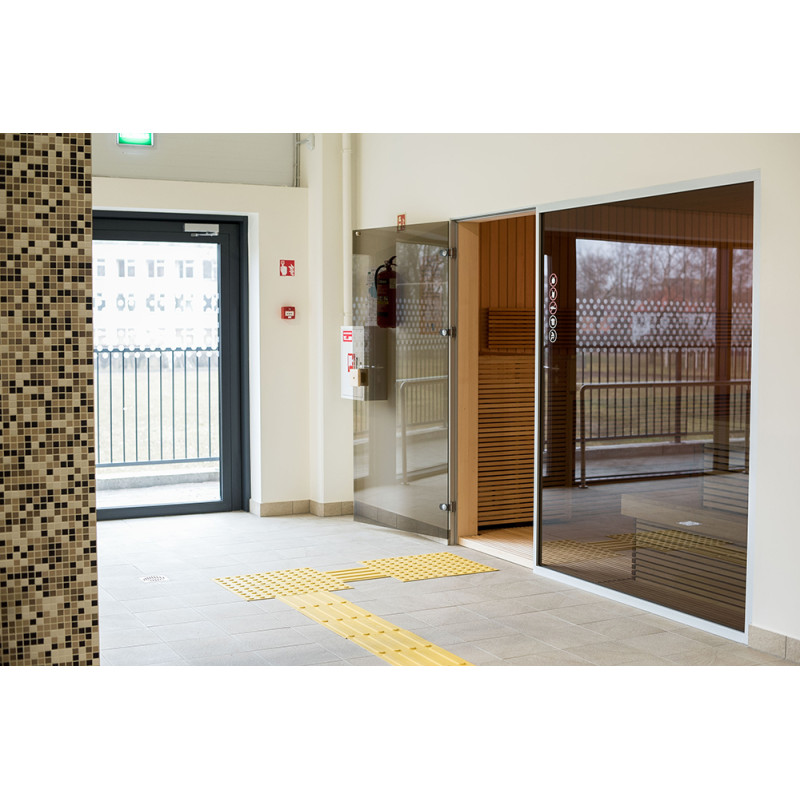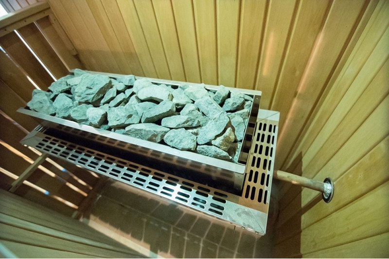 - La sauna è riscaldata da una stufa elettrica - Harvia Profi. Questo riscaldatore è progettato per i bagni pubblici più grandi. Costruzione estremamente robusta in acciaio inossidabile.