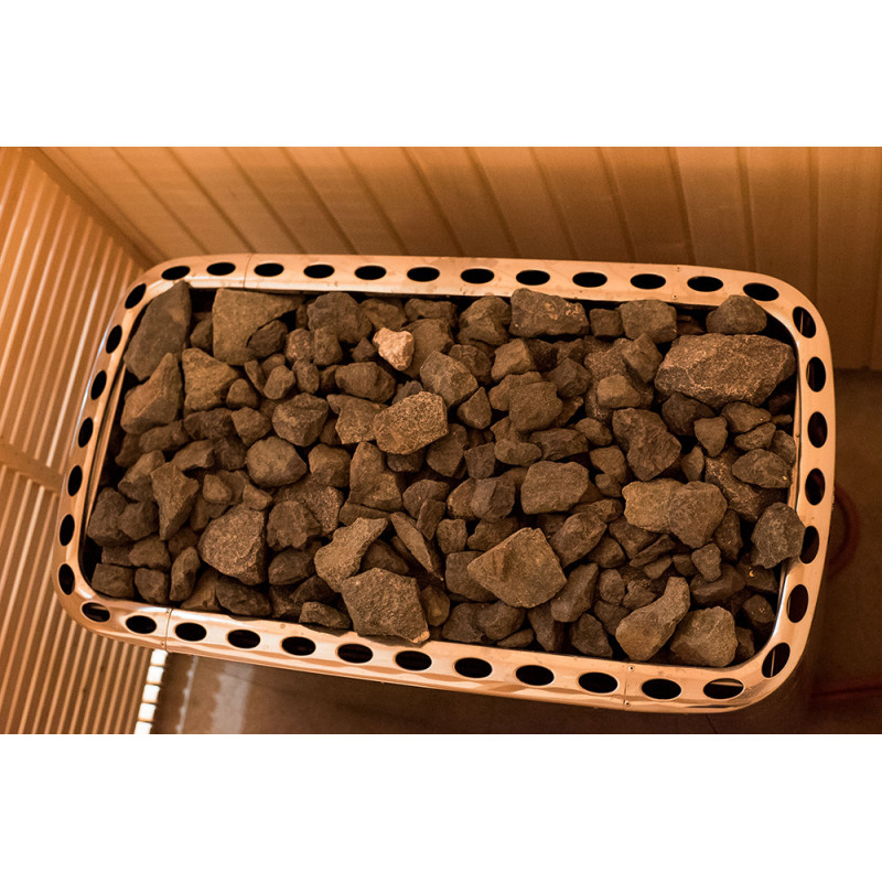 - La stufa è riempita con 80 kg di pietre per sauna.