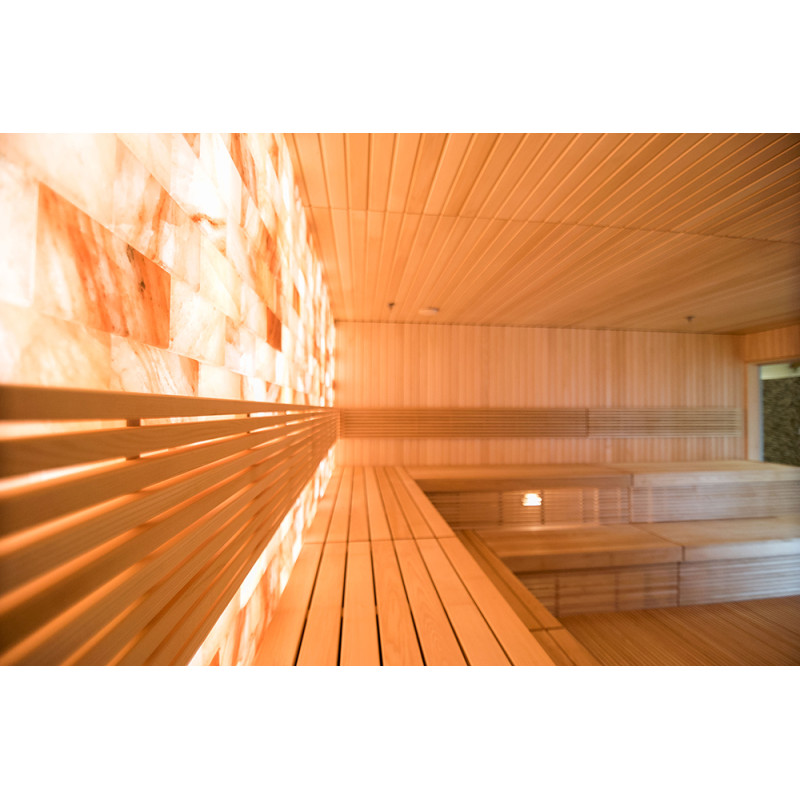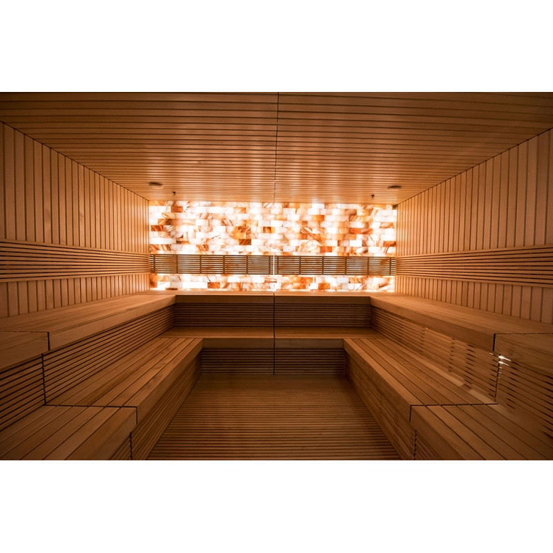 I mattoni di sale dell'Himalaya selezionati per la decorazione delle pareti della sauna con illuminazione integrata creano un'atmosfera accogliente e migliorano ulteriormente l'effetto della sauna. I sali dell'Himalaya sono uno ionizzatore naturale che migliora efficacemente la qualità dell'aria emettendo ioni negativi. L'aria ionizzata negativamente migliora la salute, aiuta a curare molti disturbi come: asma bronchiale, malattie polmonari e bronchiali, postinfarto, ipertensione, ulcere gastrointestinali, gastrite, malattie della tiroide, dermatiti, allergie varie, malattie nervose, aiuta a superare l'ictus. Ci sono due vantaggi nell'usare una sauna in una sauna con sali dell'Himalaya.
