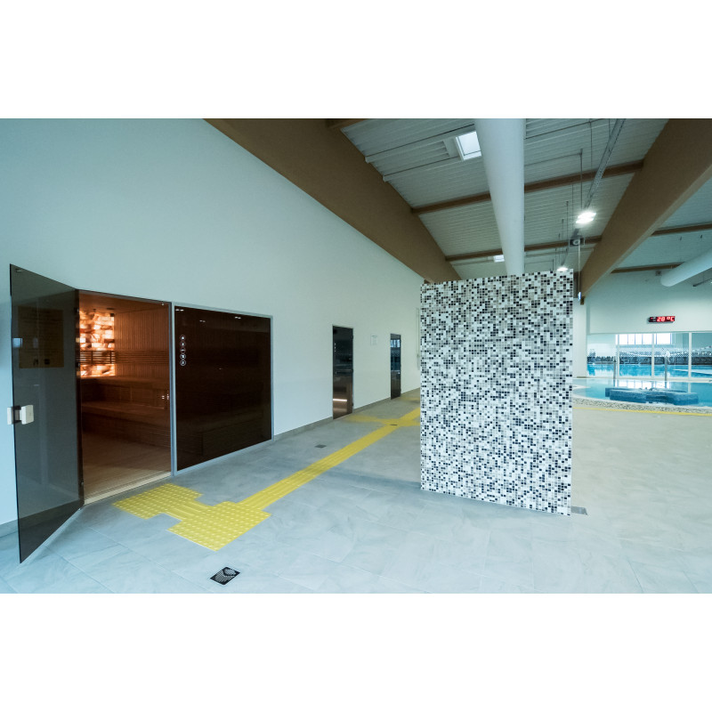 Le superfici interne sono realizzate in polistirene espanso utilizzando stirene EPS a taglio continuo. Arco del soffitto. Panche - lettini secondo un progetto individuale. Vasi a vapore, con grill. Le superfici interne della sauna sono rinforzate con una miscela di rinforzo con una rete, la superficie è livellata e impermeabilizzata.