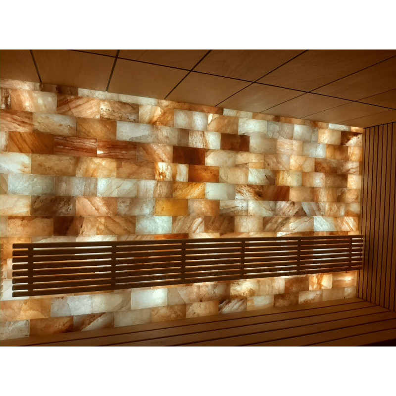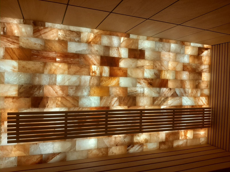 - Sauna al sale dell'Himalaya - Il sale dell'Himalaya è uno dei sali più conosciuti al mondo. Il sale himalayano migliora la qualità dell'aria interna, riduce i sintomi di allergia e asma, migliora l'umore e fornisce energia. Il sale himalayano viene scelto non solo per le proprietà positive per la salute. L'illuminazione sotto i mattoni di sale dell'Himalaya ha creato un ambiente particolarmente accogliente e suggestivo.