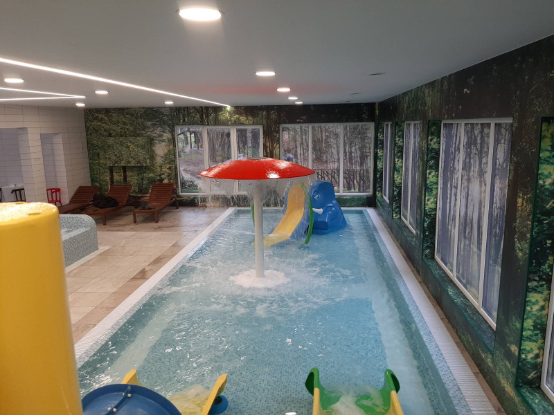 - Piscina (6 m di lunghezza) con cascate, geyser subacquei.
