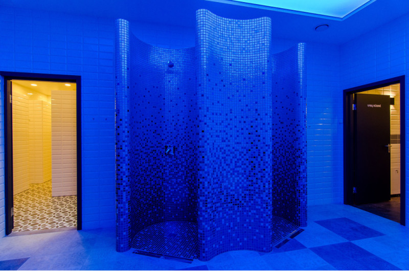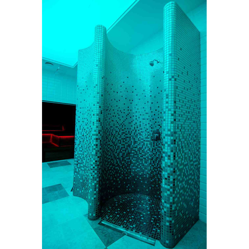 Gli stampi per doccia sono realizzati in XPS 300, utilizzando le specifiche. tecnologia di taglio secondo il design individuale. Stampi montati, impermeabilizzati con impermeabilizzante lubrificato Schonox. Tessere di mosaico incollate, adattate alla curvatura e riempite con impermeabilizzante Schonox grigio. Docce - per scopi diversi. Uno - per un semplice lavaggio, l'altro - per rinfrescarsi dopo la sauna, con getti laterali di acqua fredda.