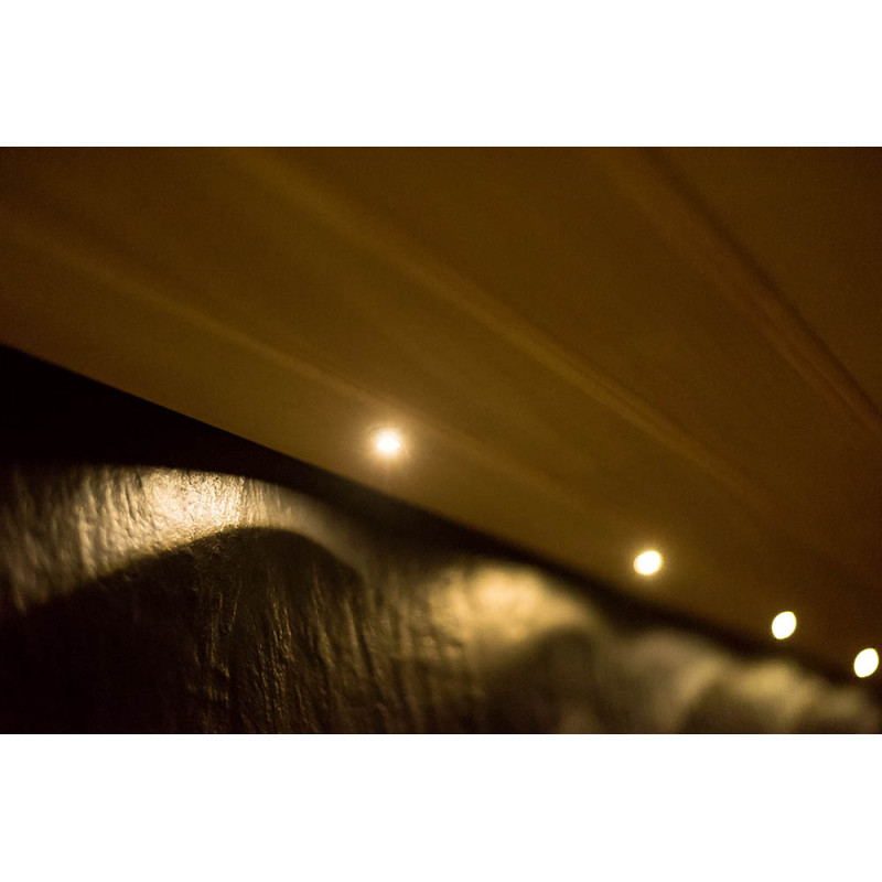 - l'impianto di illuminazione utilizza un sistema a fibra ottica "cielo stellato" e una striscia led sotto i letti,