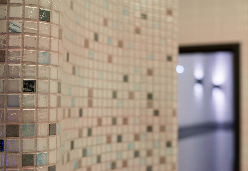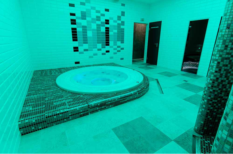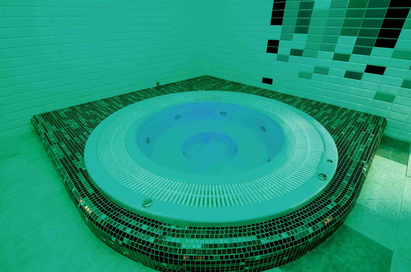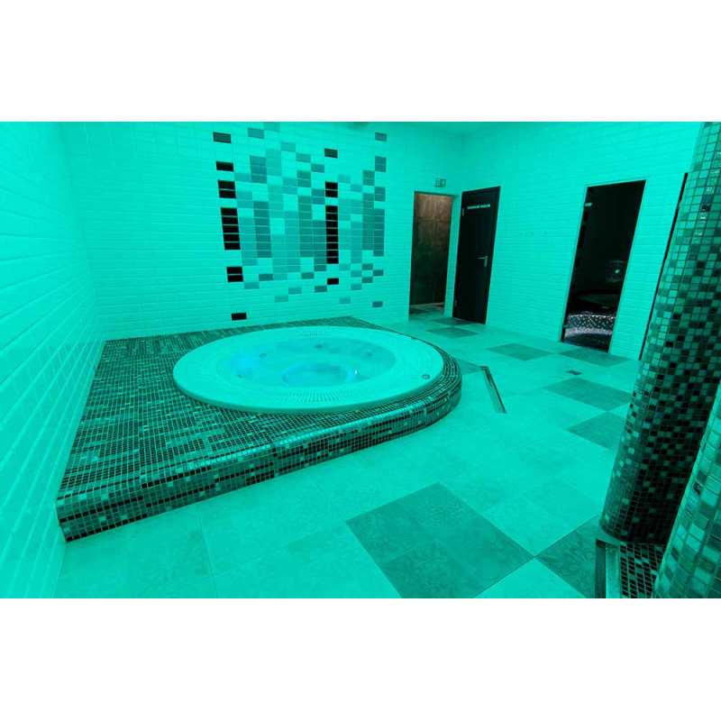 Piscina idromassaggio - commerciale. Piastrelle intorno alla piscina - mosaico di vetro. Attrezzatura: