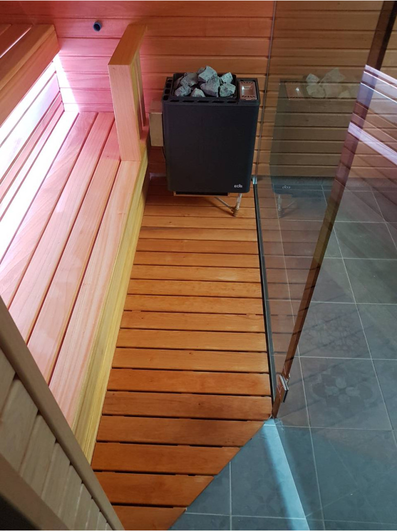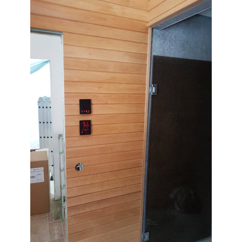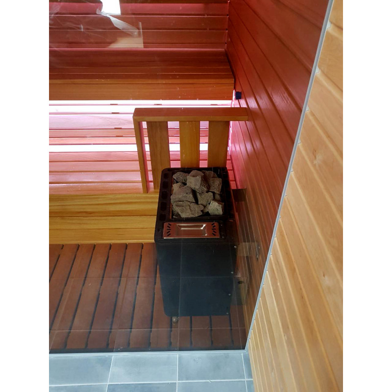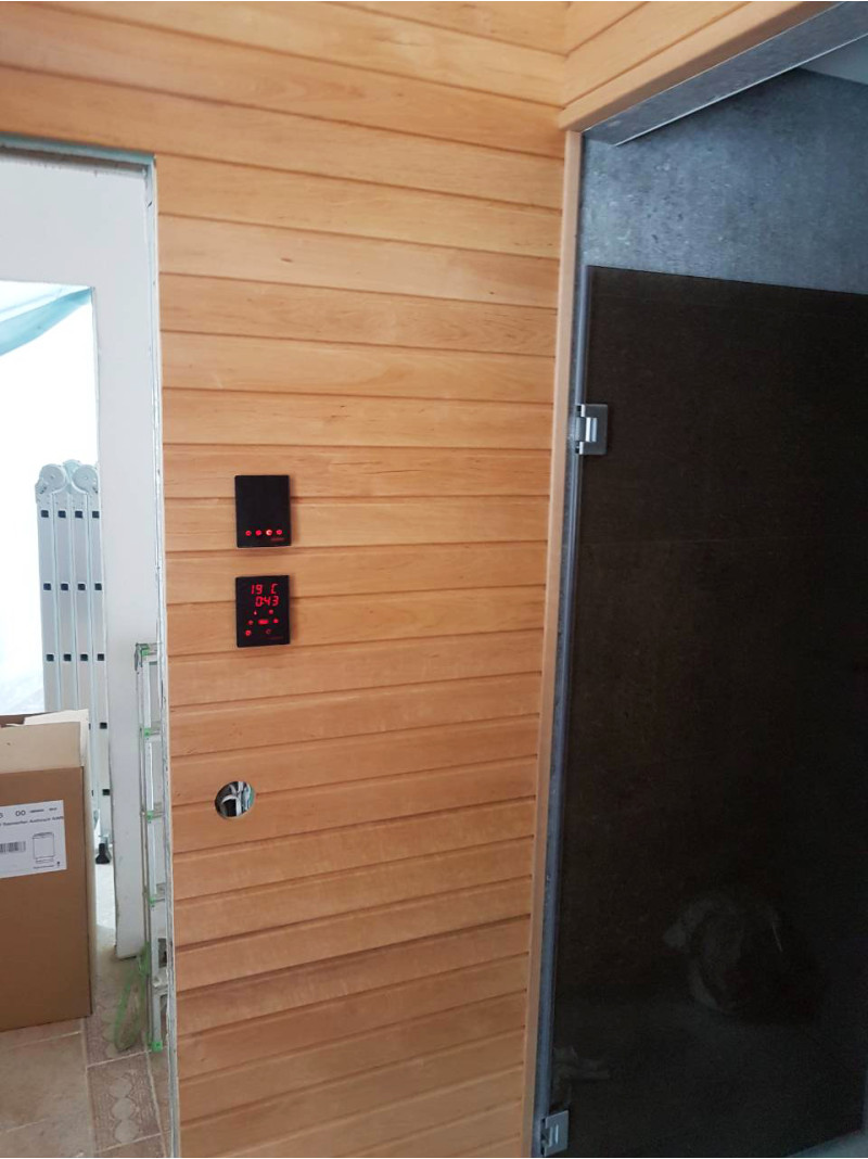 Questo progetto di sauna combina due modalità di sauna: sauna a infrarossi ea vapore. La modalità può essere facilmente impostata con il pannello di controllo integrato all'esterno della sauna.
