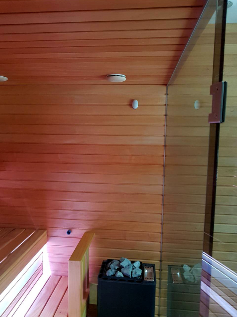 La sauna è dotata di altoparlanti in modo da poter ascoltare la tua musica preferita mentre ti godi la sauna.