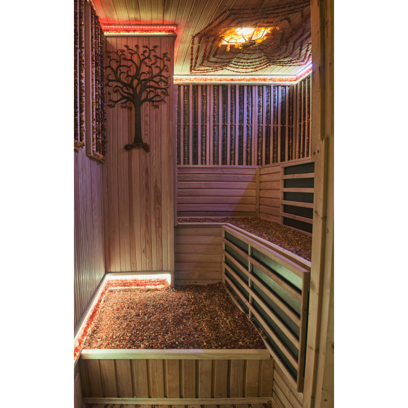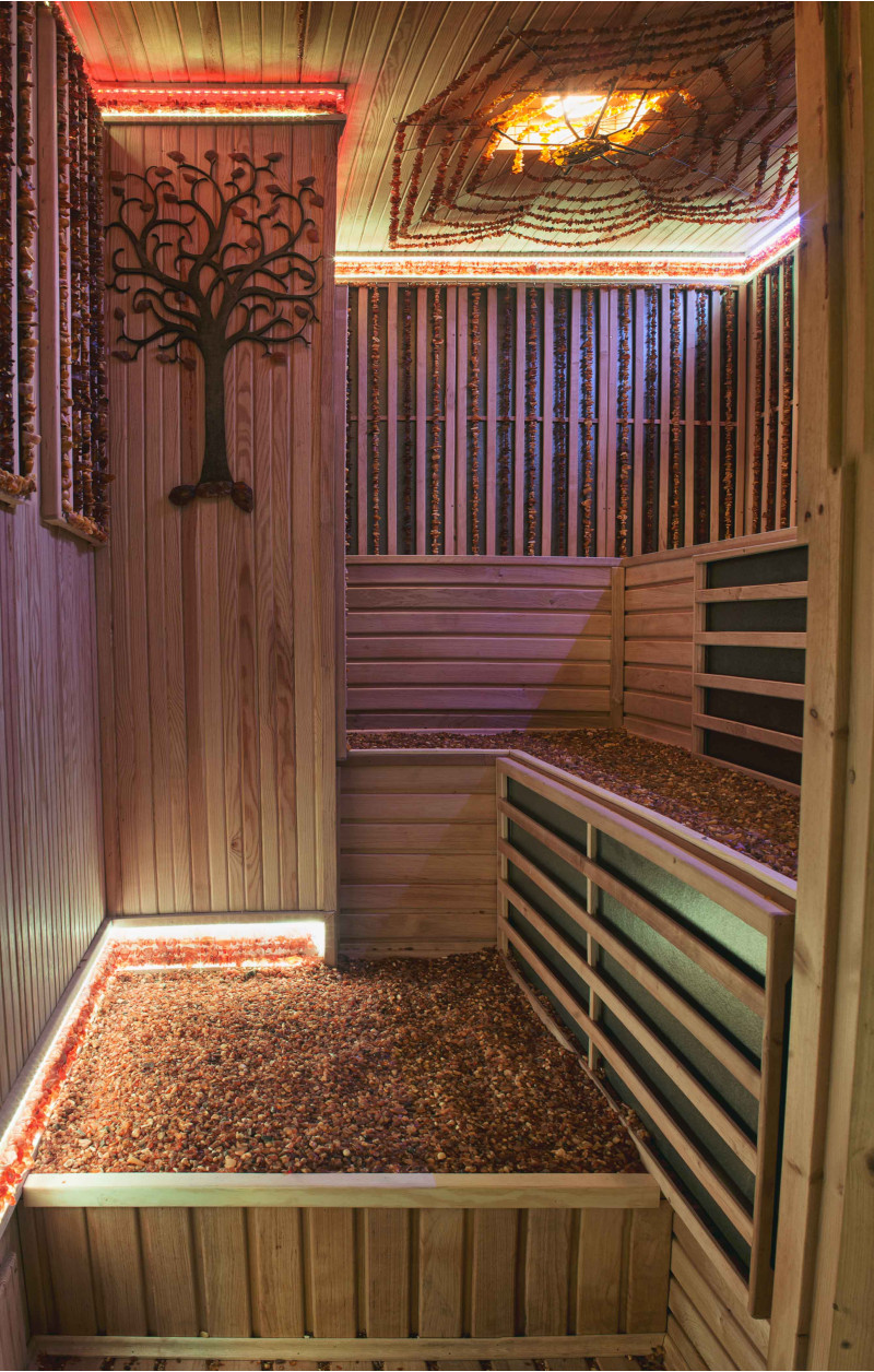 Sono stati eseguiti lavori di ricostruzione nella sauna nell'asilo privato di Klaipėda "Pasakėlė". Opere e soluzioni in ambra sono state realizzate dal cliente.