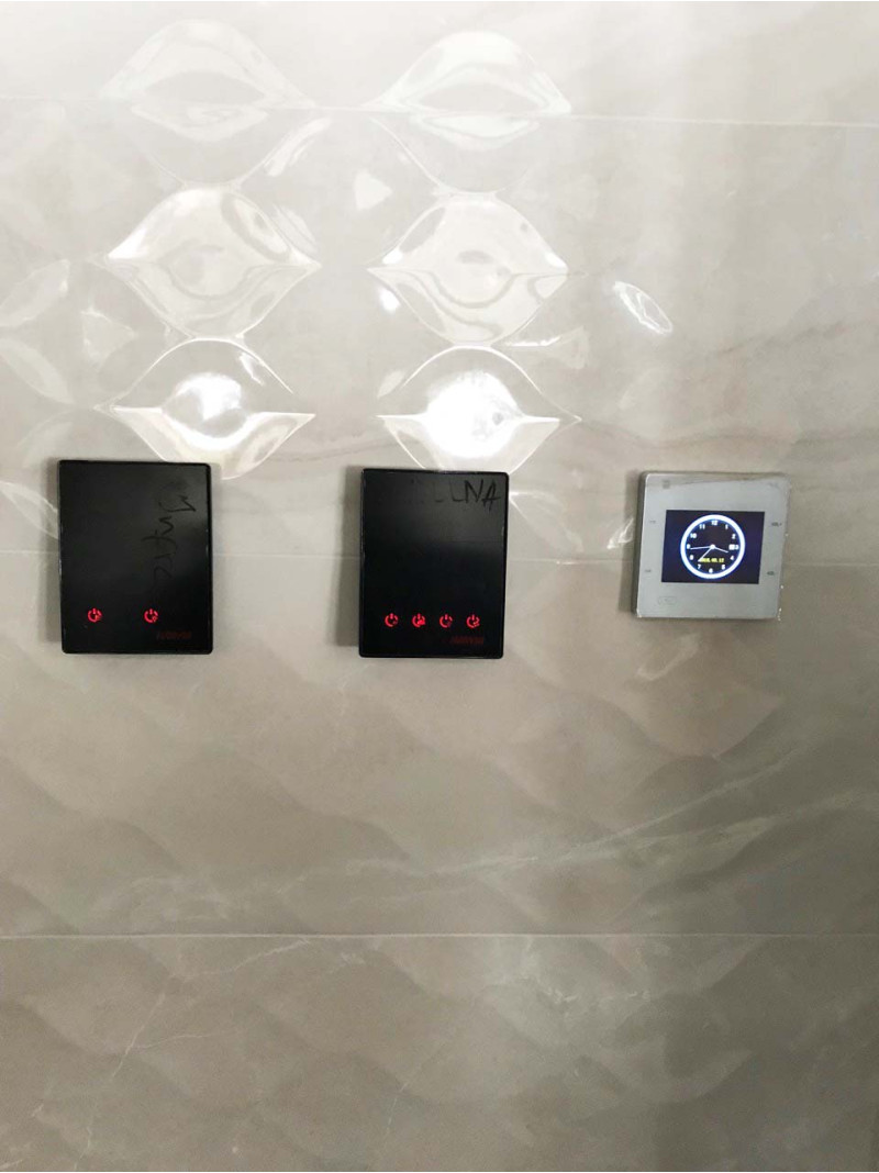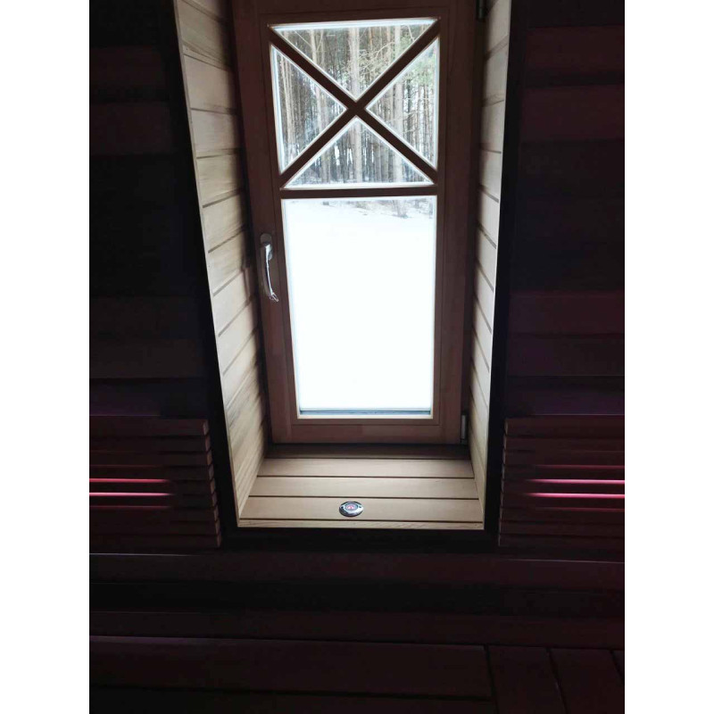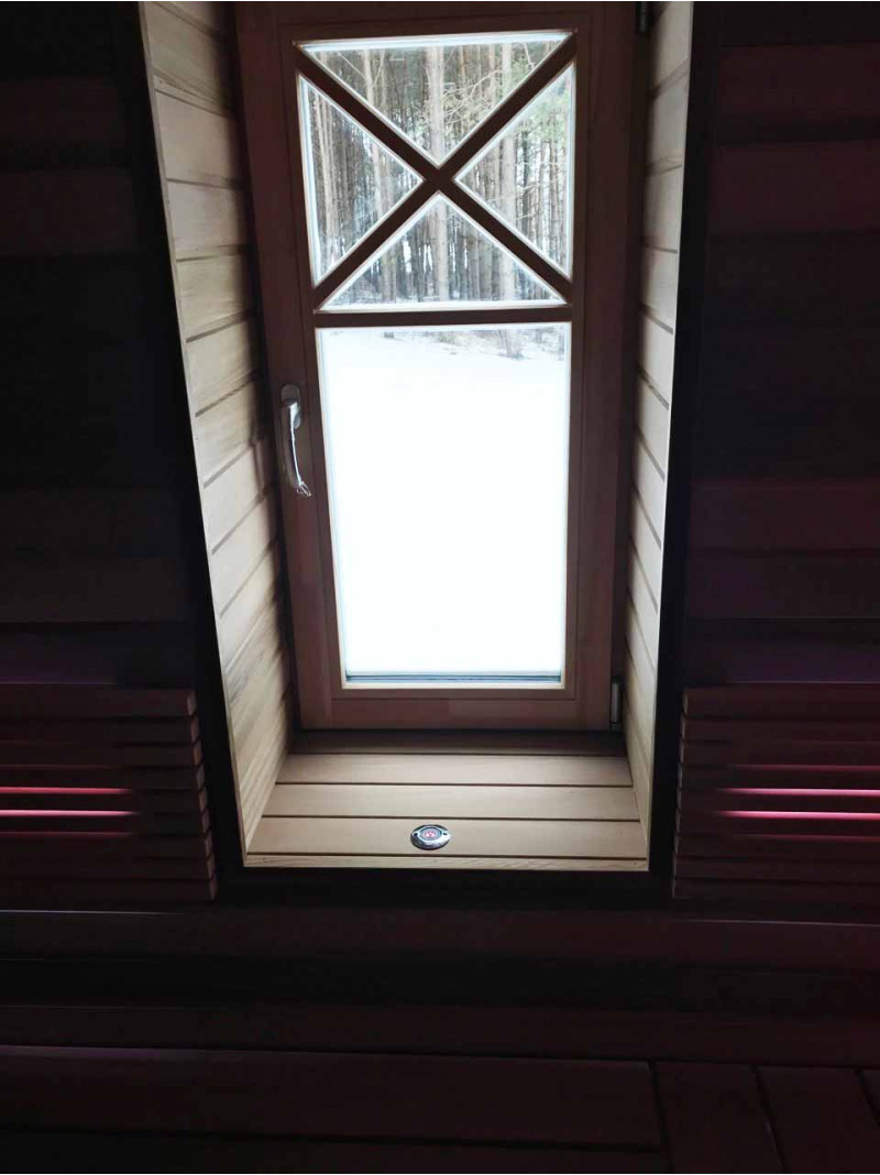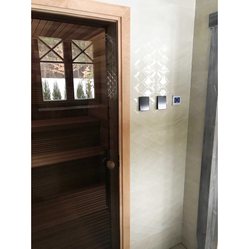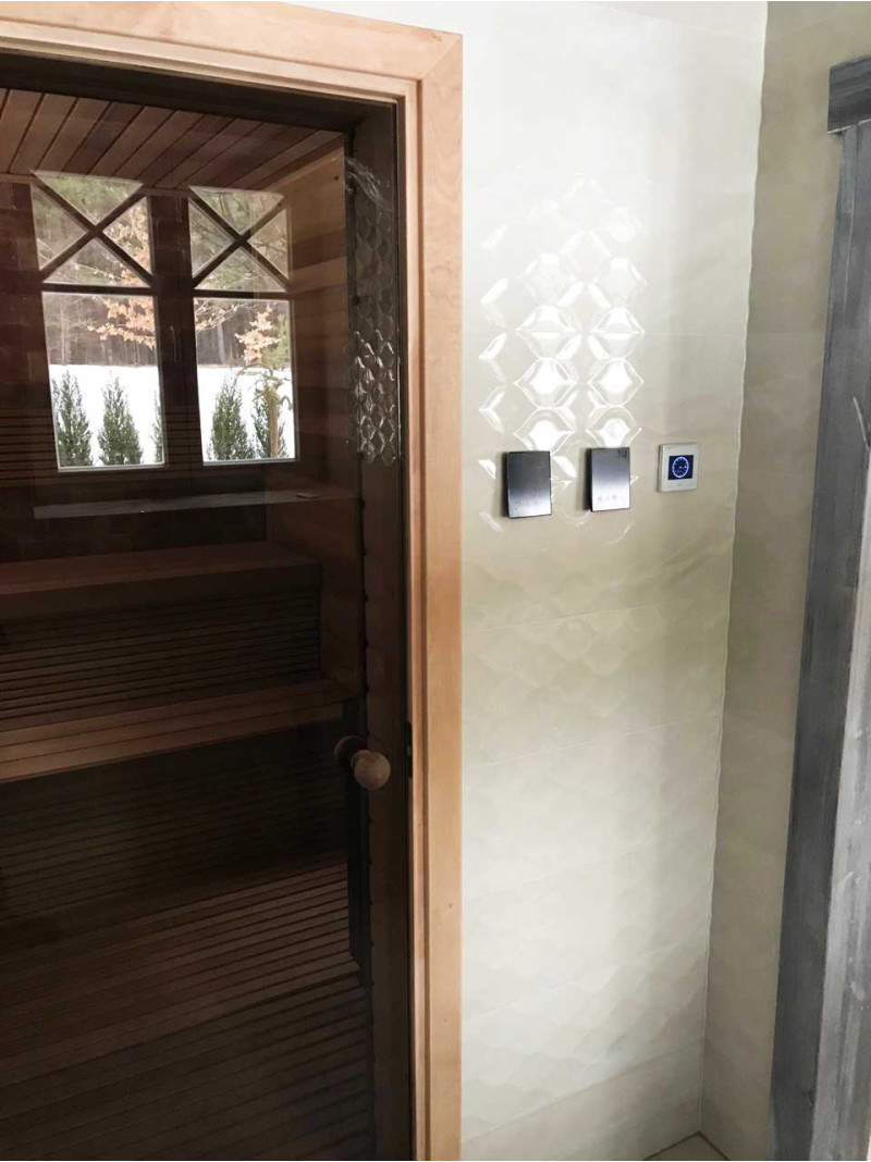 - Due pannelli di controllo installati all'esterno della sauna - per il controllo di due modalità separate. Pannello di controllo Harvia Xenio Combi CX110C e pannello di controllo a infrarossi Harvia CX36I.