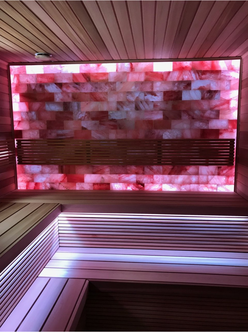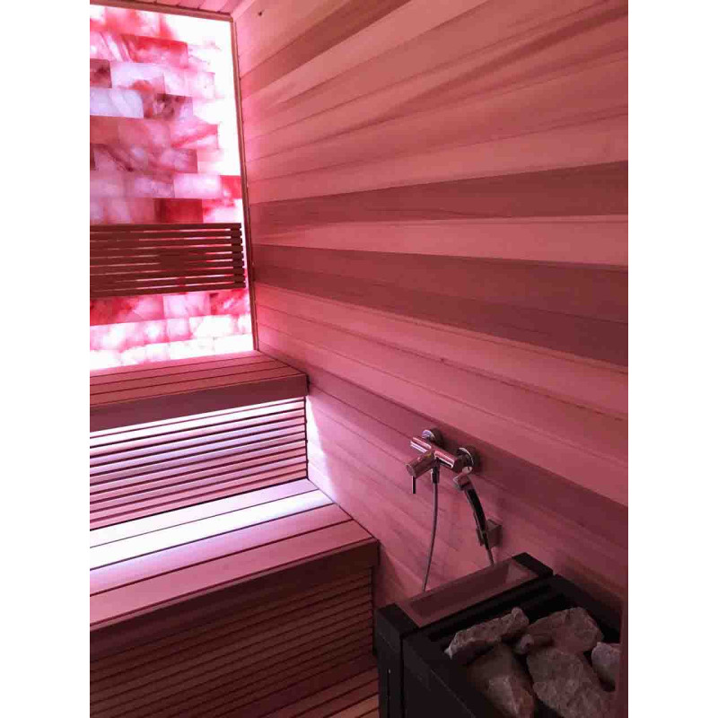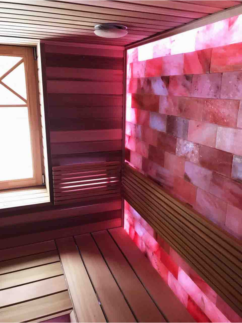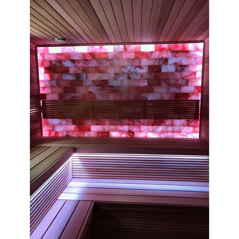 La qualità dell'aria e le sensazioni della sauna sono notevolmente esaltate dalla grande parete di sali dell'Himalaya. Gli ioni negativi emessi migliorano la salute, aiutano a superare molti disturbi come: asma bronchiale, malattie polmonari e bronchiali, postinfarto, ipertensione, ulcere gastrointestinali, gastriti, malattie della tiroide, dermatiti, allergie varie, malattie nervose, aiuta a superare lo stress. I vantaggi dell'esecuzione di procedure in una tale sauna sono duplici.