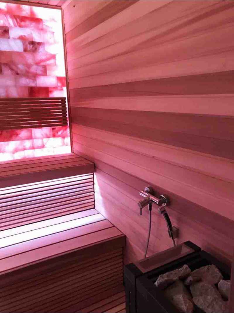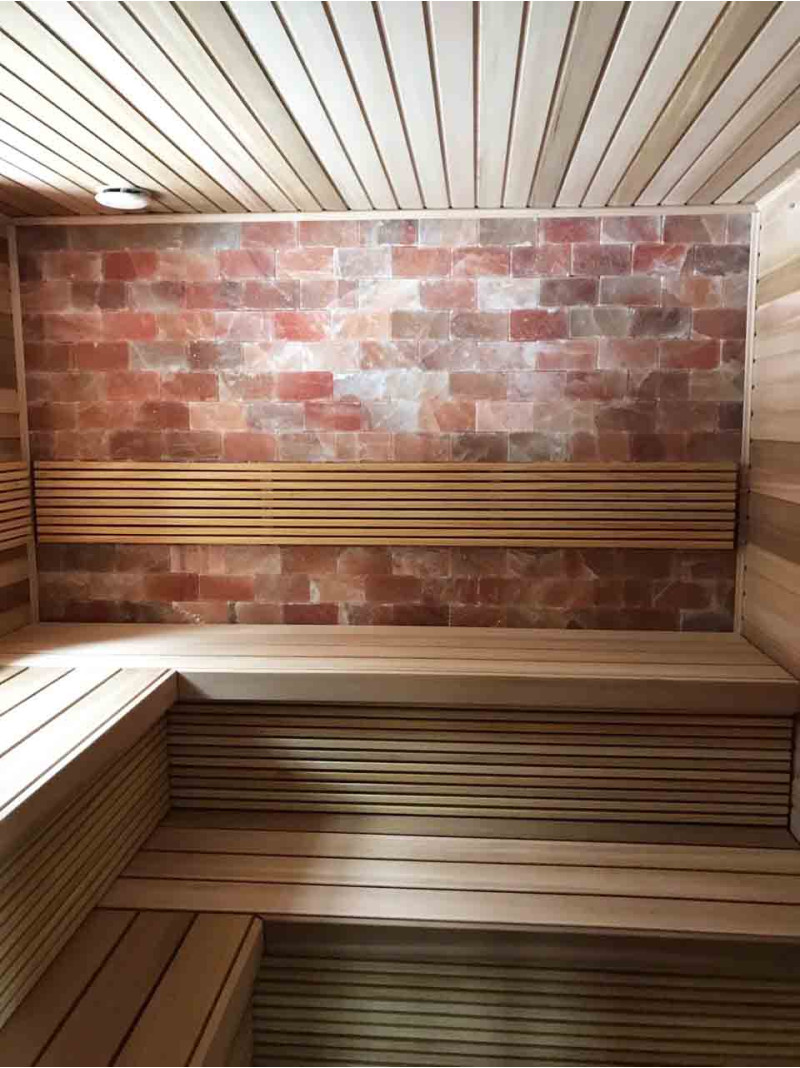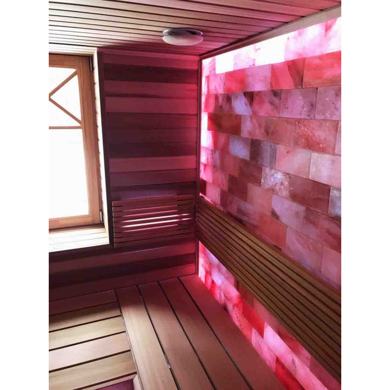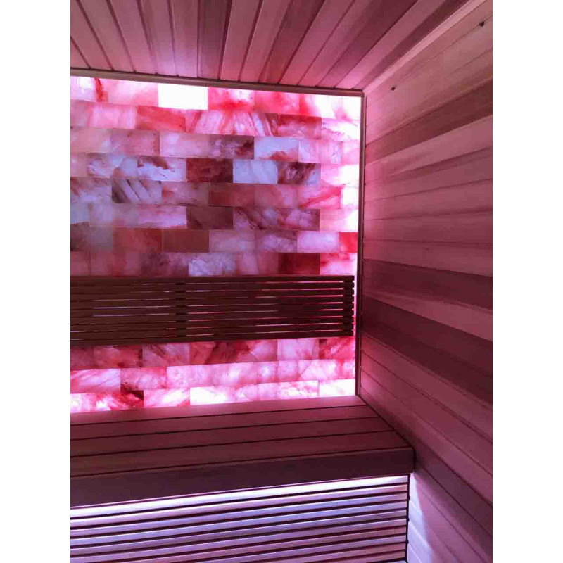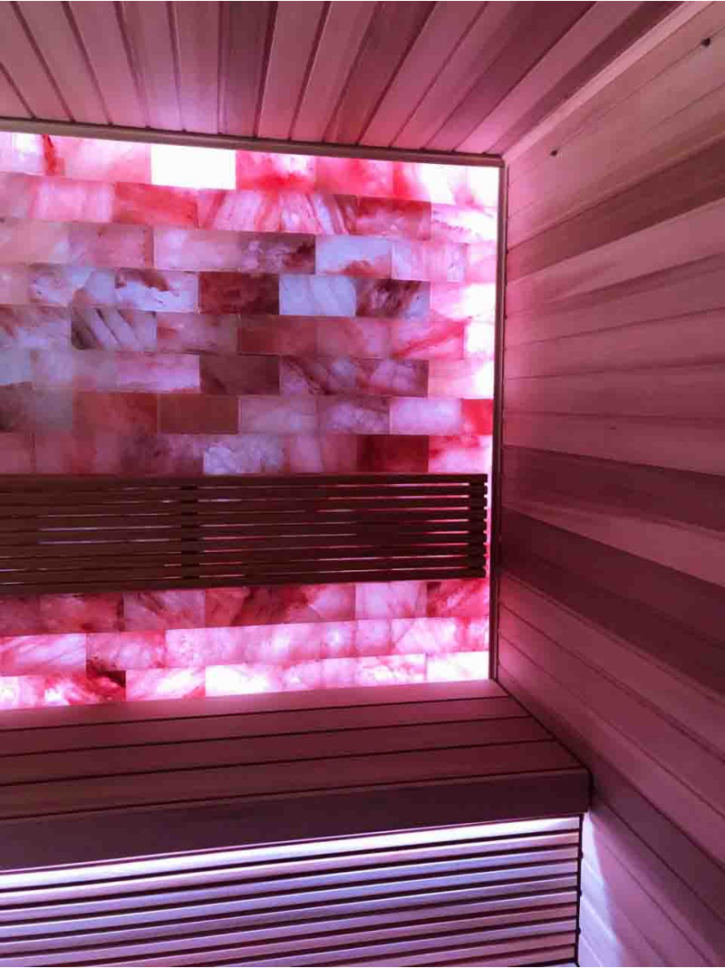 La qualità dell'aria e le sensazioni della sauna sono notevolmente esaltate dalla grande parete di sali dell'Himalaya. Gli ioni negativi emessi migliorano la salute, aiutano a superare molti disturbi come: asma bronchiale, malattie polmonari e bronchiali, postinfarto, ipertensione, ulcere gastrointestinali, gastriti, malattie della tiroide, dermatiti, allergie varie, malattie nervose, aiuta a superare lo stress. I vantaggi dell'esecuzione di procedure in una tale sauna sono duplici.