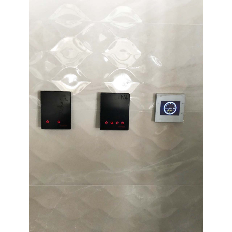- Centro musicale, da incasso a parete con schermo LCD a colori. Adatto per l'uso in sauna. Viene fornito con altoparlanti resistenti all'umidità e al calore. Azionato da pulsanti o telecomando.