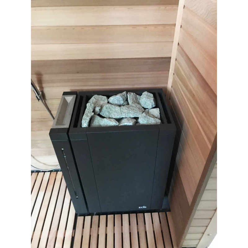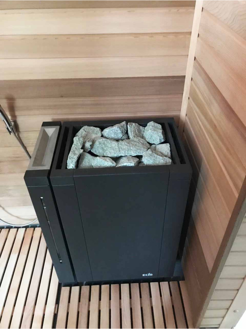 - Forno elettrico dal design esclusivo EOS Mythos S45 Vapor con generatore di vapore. Il forno può contenere fino a 45 kg di pietre di giadeite. Questa quantità è sufficiente per mantenere una temperatura costante e godersi comodamente la sauna. Manutenzione conveniente: le pietre non toccano gli elementi riscaldanti. Possono essere sostituiti senza rimuovere le pietre.