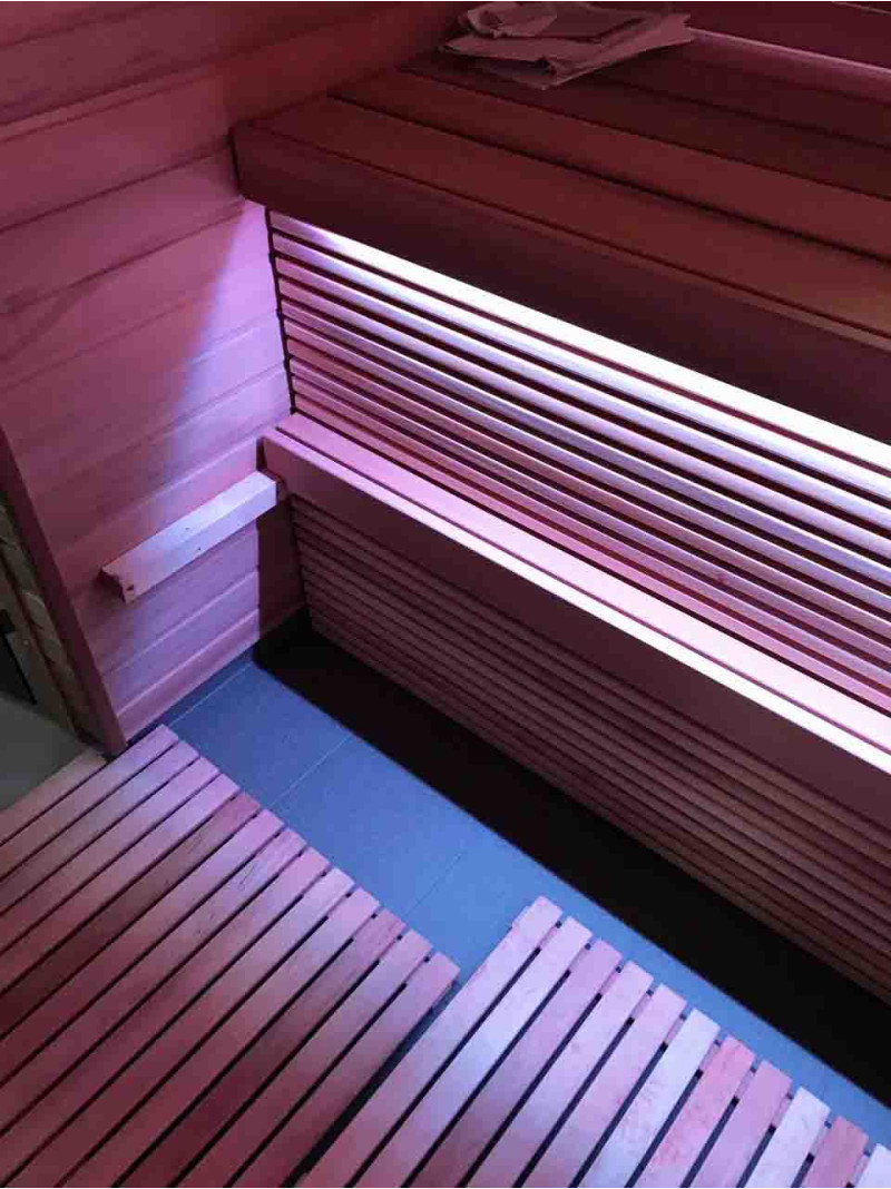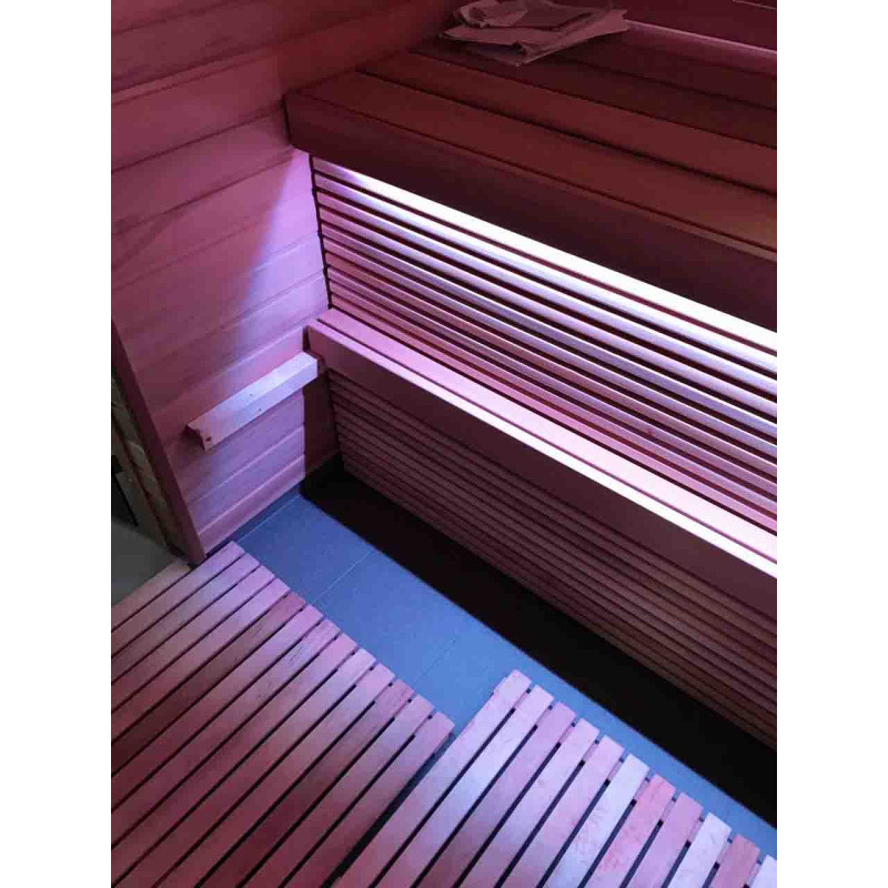 Questo progetto di sauna è unico in quanto combina due tipi di sauna: una sauna tradizionale e una sauna a infrarossi.