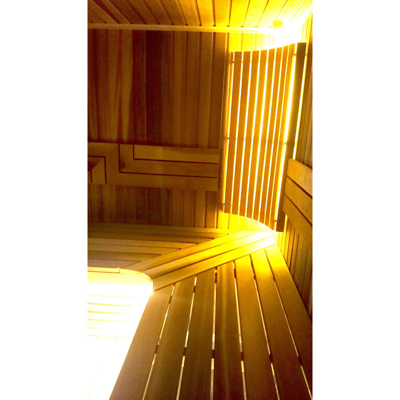 La località francese di Cannes dispone di una sauna realizzata con legno di cedro di altissima qualità. È un legno che emette oli essenziali naturali. Il cedro è naturalmente resistente all'umidità, quindi il legno non si distorce, si arriccia o si restringe. Ha proprietà disinfettanti, antibatteriche. È un'ottima scelta per le persone con allergie o malattie respiratorie, poiché emette un aroma lenitivo naturale.