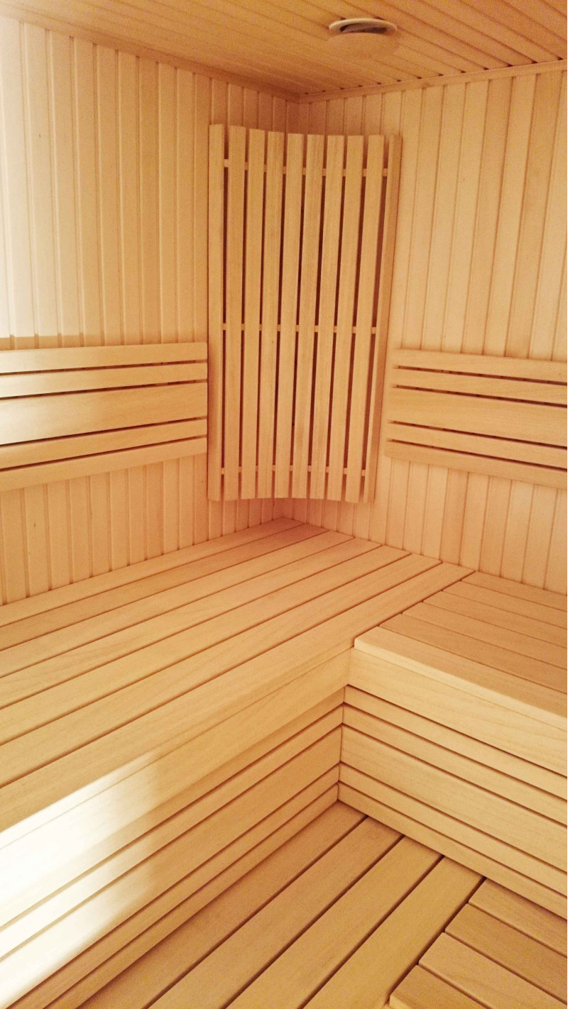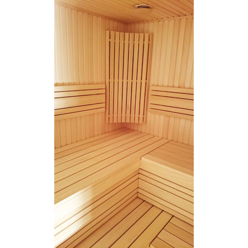 I soffitti e le pareti della sauna sono rivestiti con rivestimenti in tiglio, così come i supporti, le grate del pavimento e le recinzioni del riscaldatore. I lettini per sauna sono in legno di abachi di altissima qualità. Il legno per letti, supporti e pareti è impregnato e verniciato, oliato - appositamente preparato per l'uso in condizioni di calore e umidità.