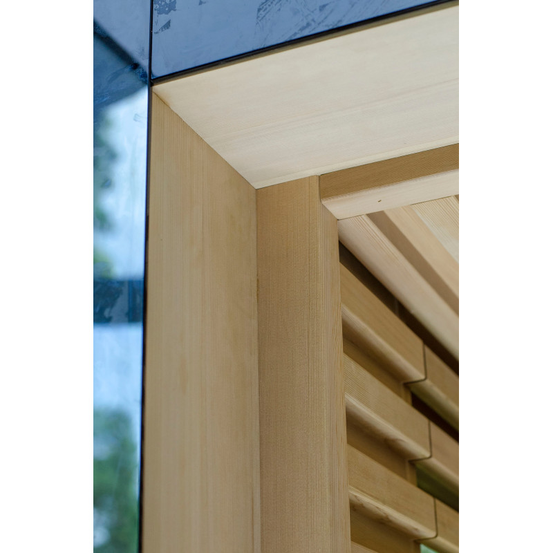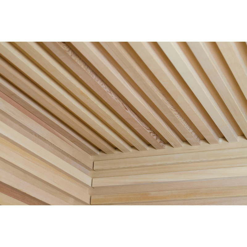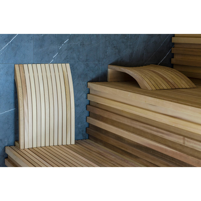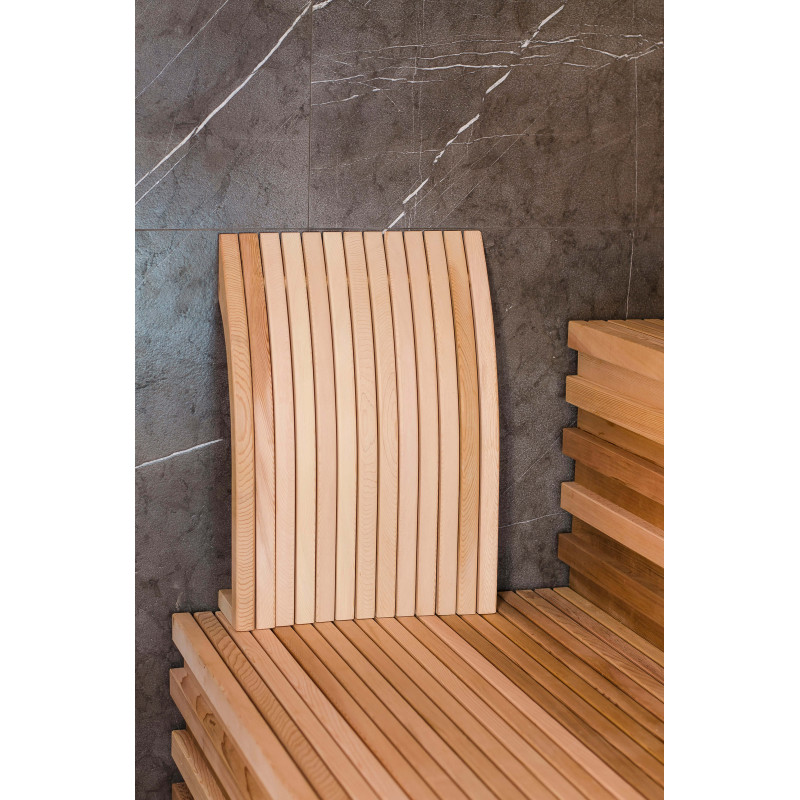 Le pareti e le panche della sauna sono realizzate in legno di cedro di altissima qualità, realizzate secondo un profilo individuale. Schienali-cuscini - legno di cedro fatto a mano. Questo legno è di alta qualità, non si riscalda, quindi è sicuro e piacevole da toccare mentre ci si gode la sauna.
