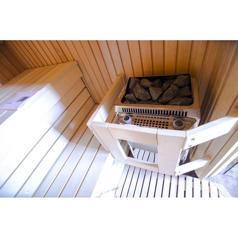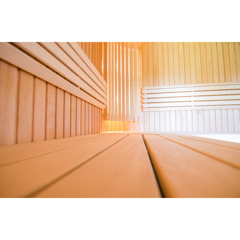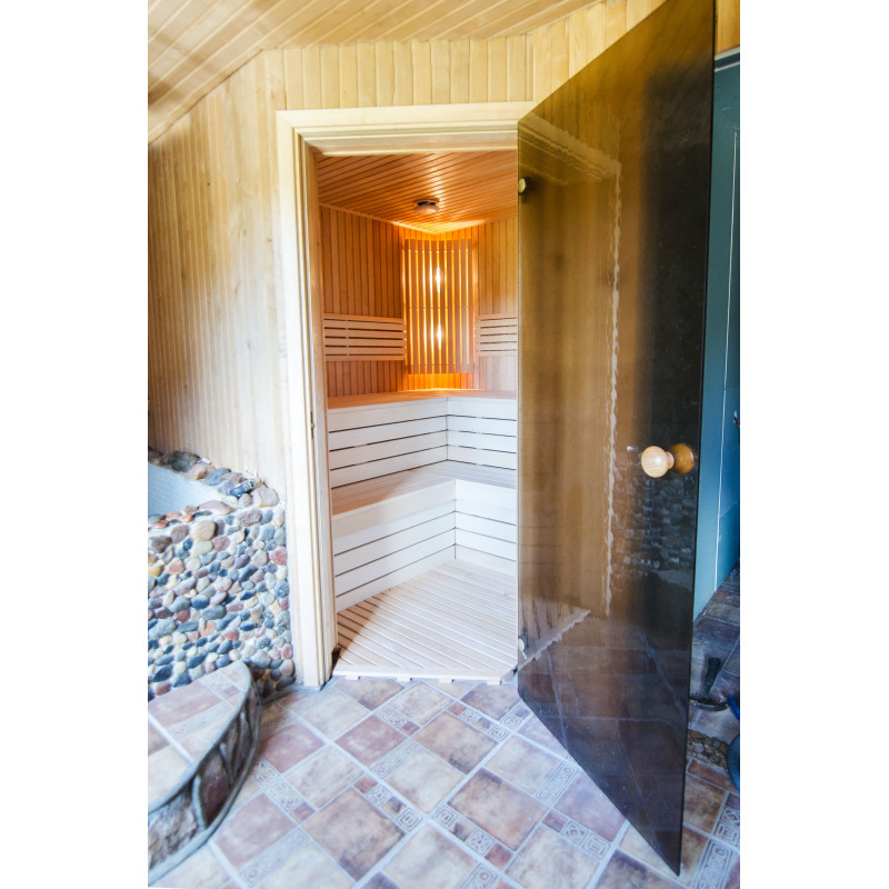 Il rivestimento in ontano nero ha un aspetto meraviglioso: una tonalità rosso scuro o cioccolato con una trama espressiva. Ciò offre molte opportunità per creare interni esclusivi. Inoltre, grazie alla sua tonalità originale, crea uno stile e un'eleganza speciali nella sauna, sottolineando l'esclusività e il lusso delle rifiniture;