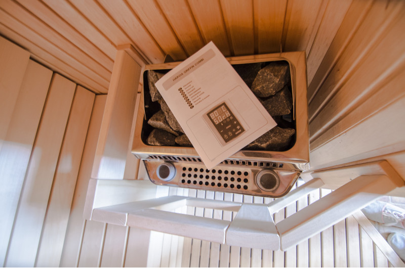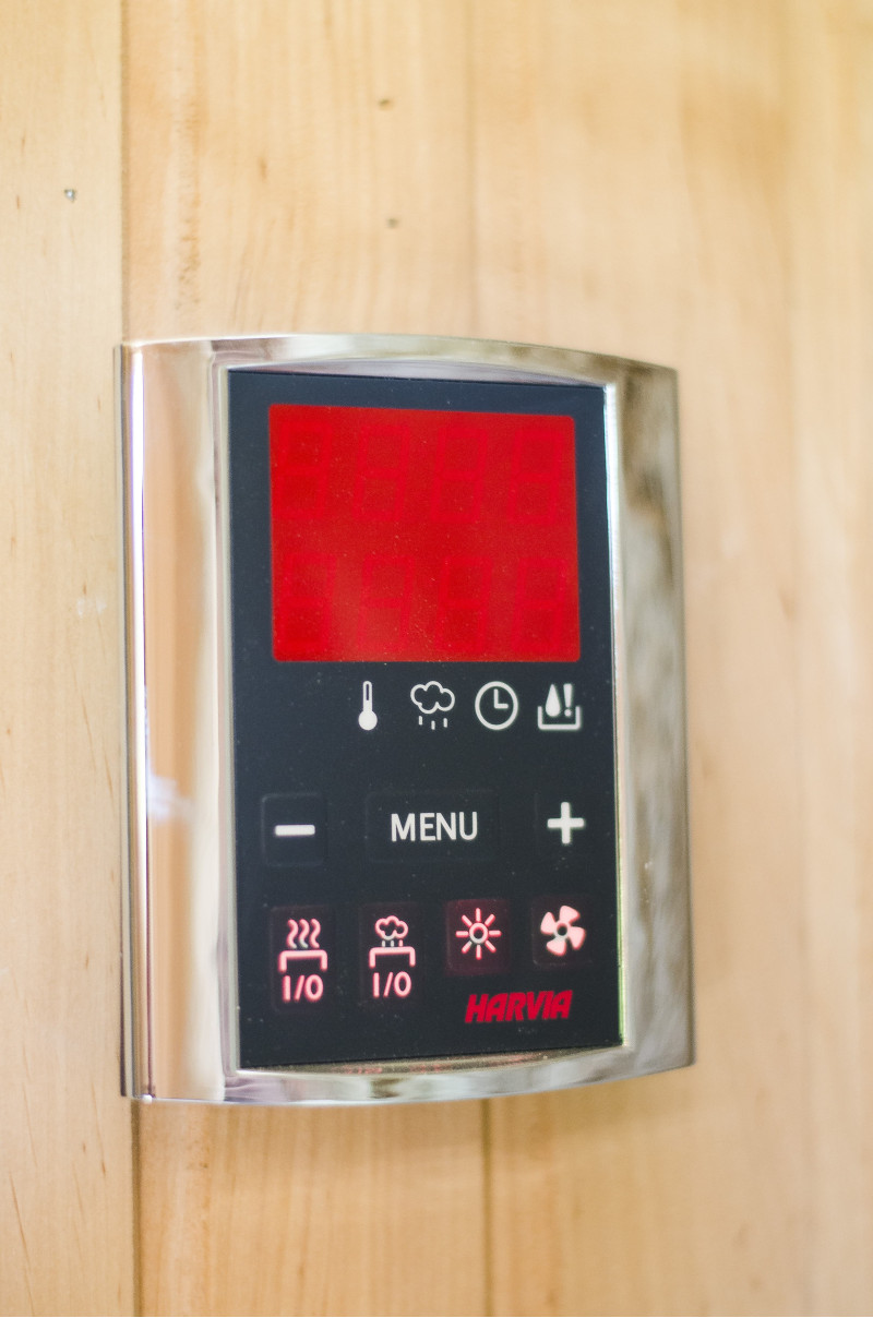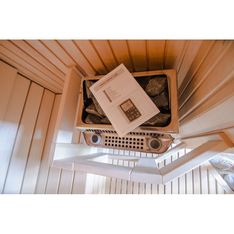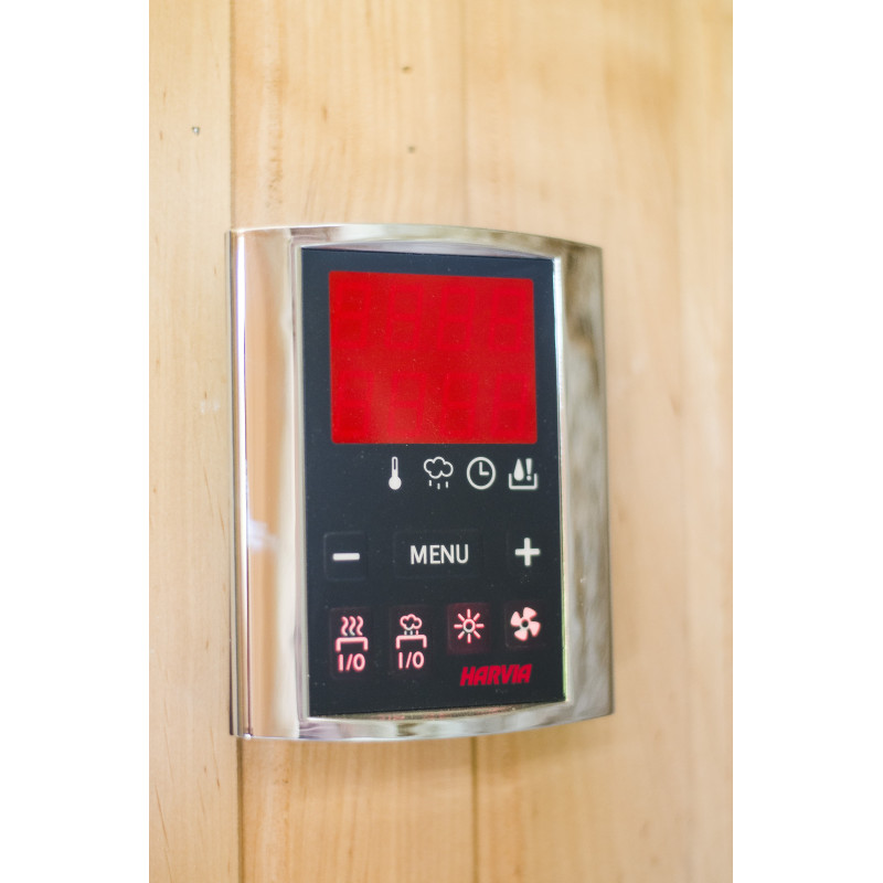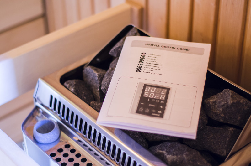 Il riscaldatore ha un'unità di controllo separata Harvia Griffin Combi CG170C per il controllo del riscaldatore Combi e anche del riscaldatore con evaporatore. Il pannello di controllo è installato all'esterno della stanza della sauna.