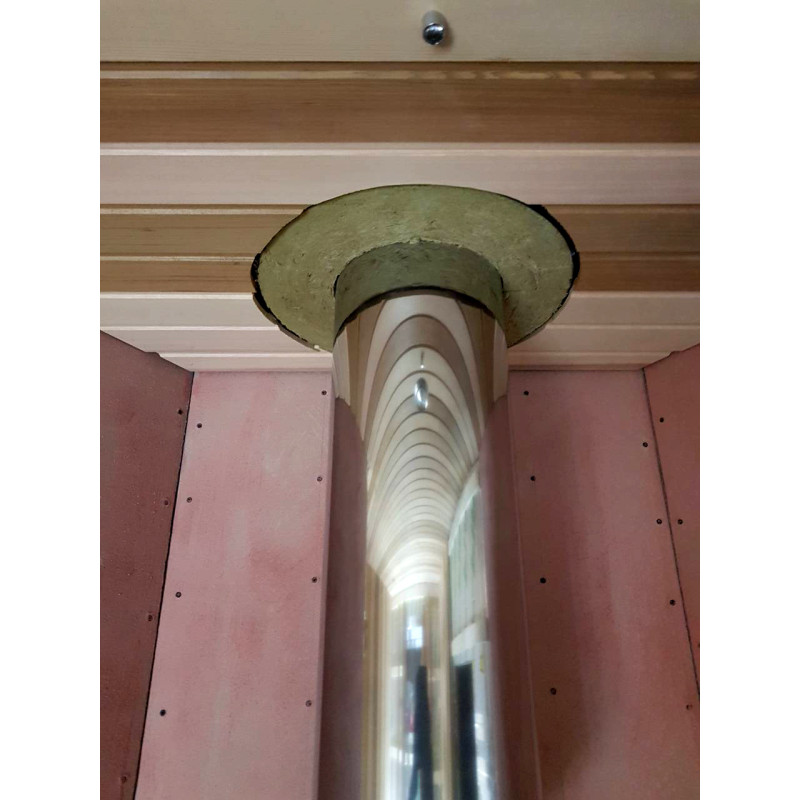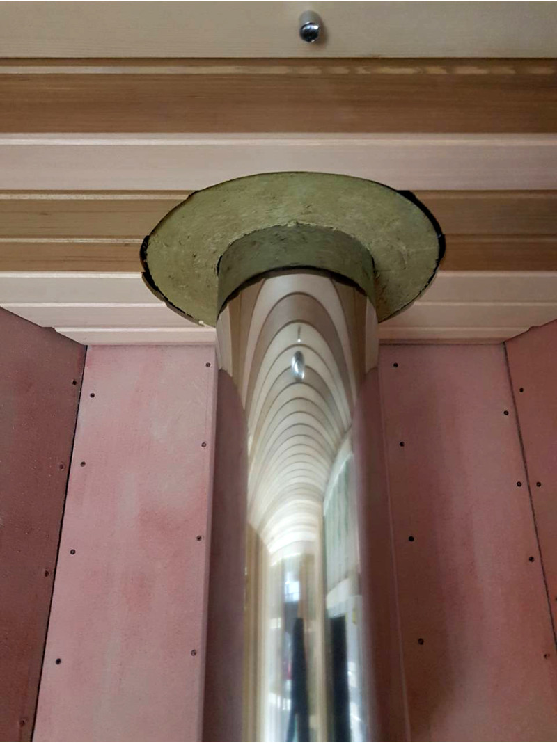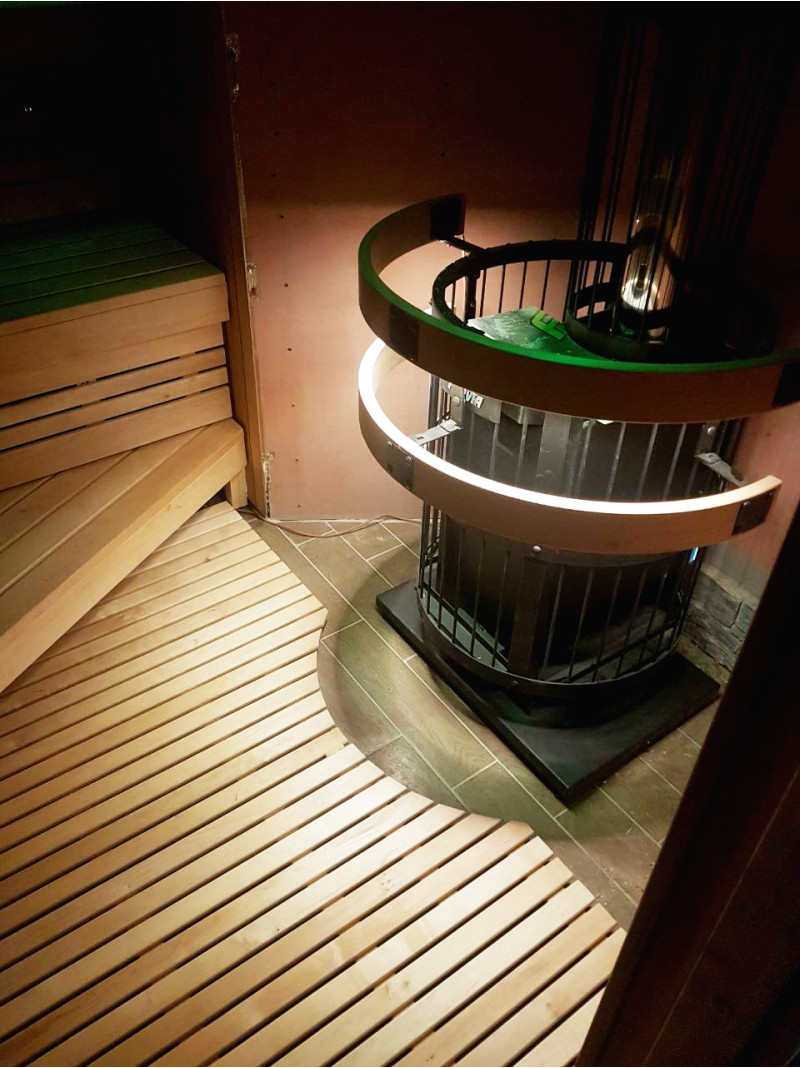 È stata scelta la stufa a legna Harvia Legend 240 DUO con focolare esterno, porta in ghisa e finestra in vetro riempita con una grande quantità di pietra ollare, che permette di godere del calore che irradiano anche in assenza di alte temperature per la sauna di medie dimensioni. Involucri del forno - Harvia Legend con illuminazione.