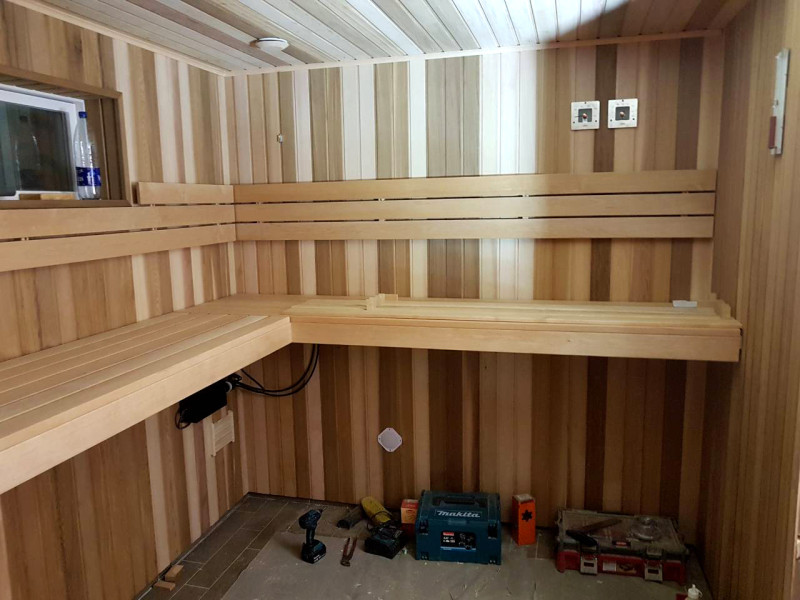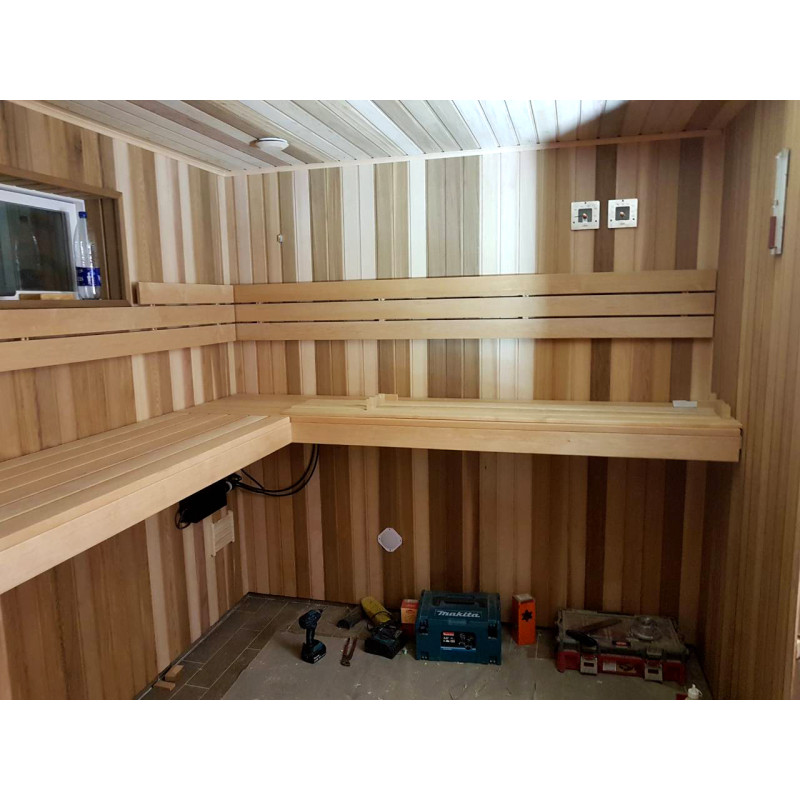 A causa dell'elevata durata della sauna, sono stati scelti legno di ontano e cedro canadese. Il legno di cedro tende ad assorbire la minor quantità di calore, il che conferisce alla sauna un maggiore comfort.